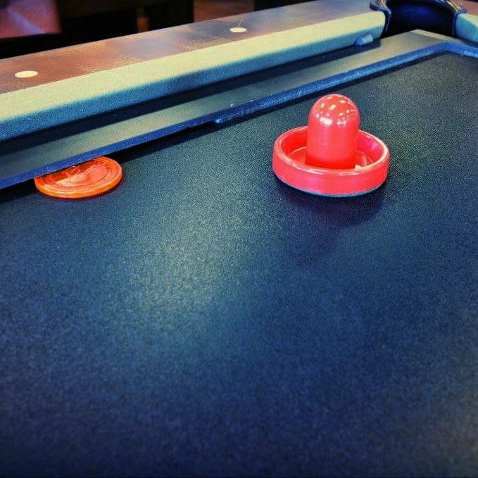 Game Includes: Play surface, 3 Pucks and 2 Pushers, foam blocking to securely hold the game.